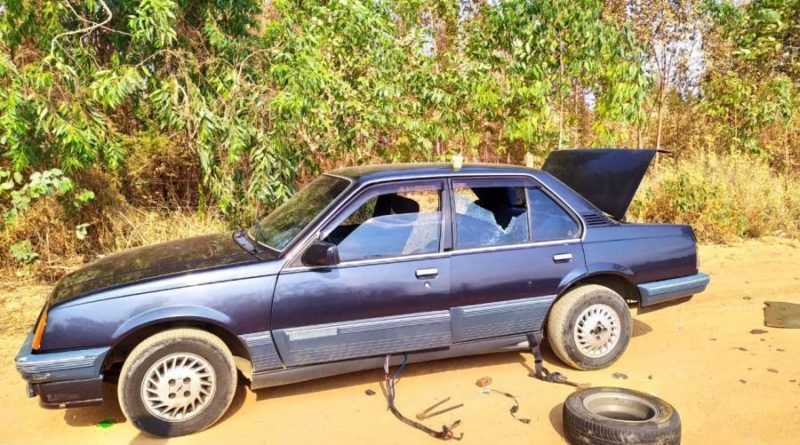 Carro furtado é abandonado depredado em estrada vicinal