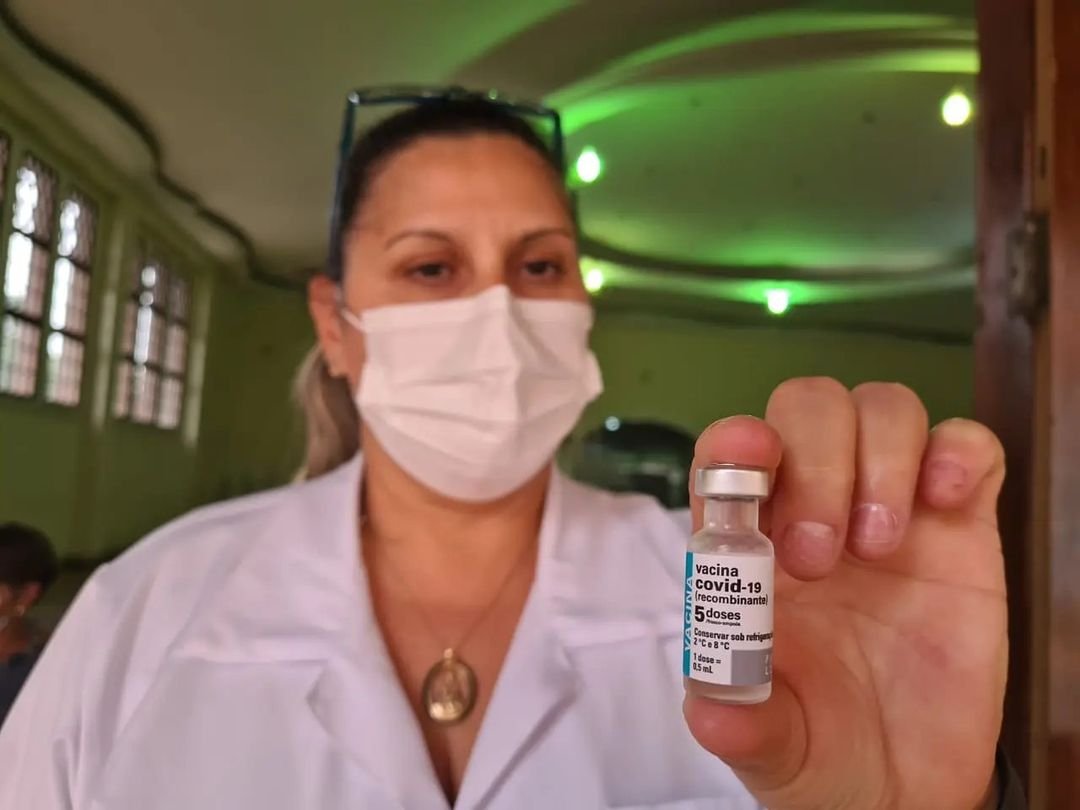 técnica de enfermagem segurando frasco com vacina contra covid