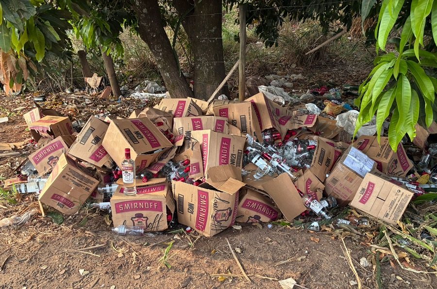 600 garrafas de vodka são descartadas às margens de rodovia em Passos
