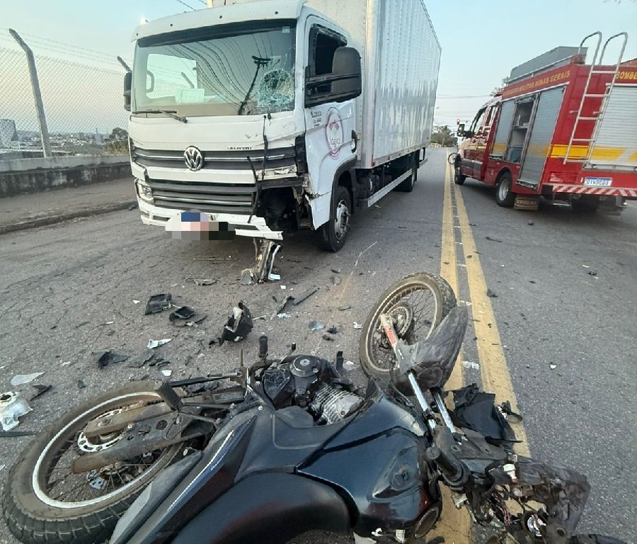 Acidente entre motocicleta e caminhão deixa jovem ferido em Varginha