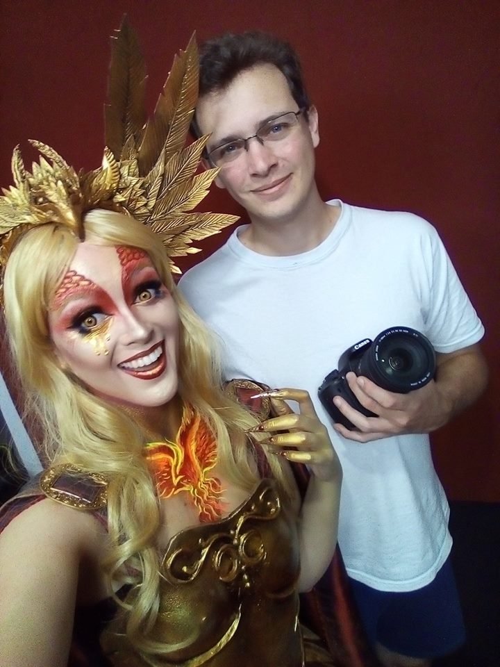 A terceira personagem foi a Fênyx, criação que garantiu o lugar na final do concurso. Por trás da maquiagem, estão horas de pesquisas e referências, o desafio era “Seres Mitológicos” e a artista optou por um ser que estivesse presente em diferentes culturas e representar um pouco de cada uma com criatividade.