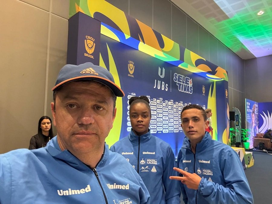 A atleta Rafaela Cristine e o atleta Julio Cesar juntamente com o técnico Sídney De Parolis representaram Poços de Caldas na competição em Brasília – foto divulgação