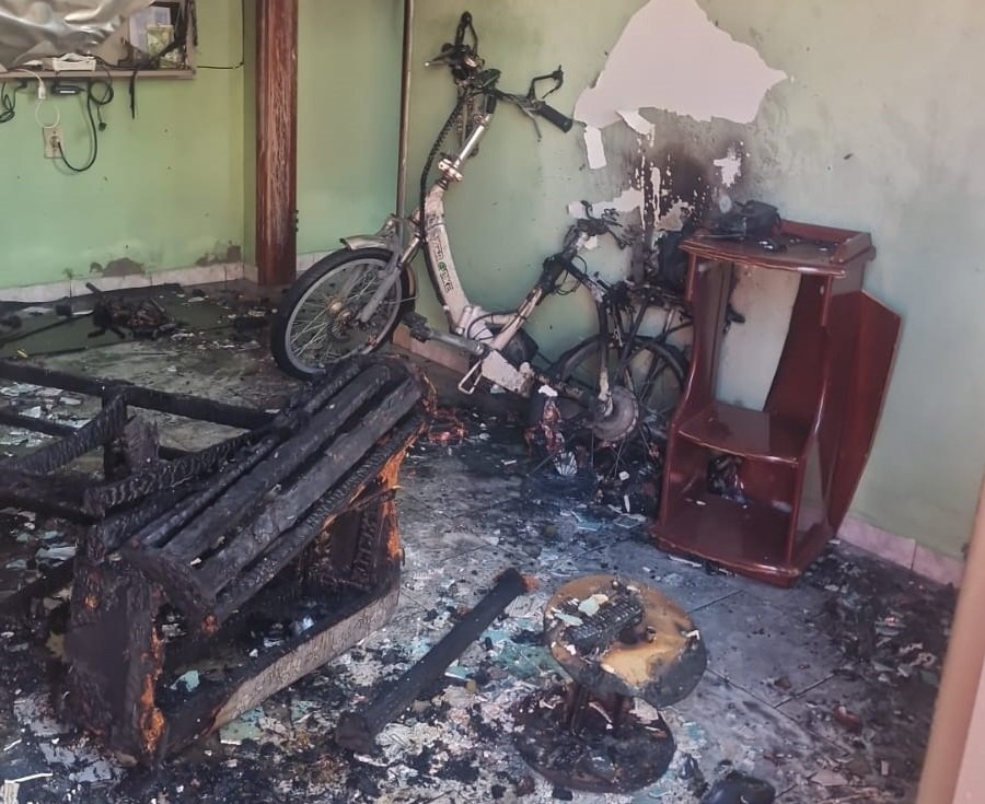 Bicicleta elétrica provoca incêndio em uma casa em Alfenas