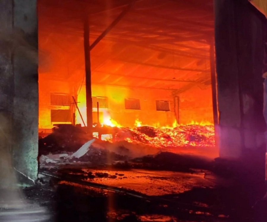 As chamas atingiram um galão onde o carvão era armazenado. Foram necessários 100 mil litros de água para controlar o fogo – foto Corpo de Bombeiros