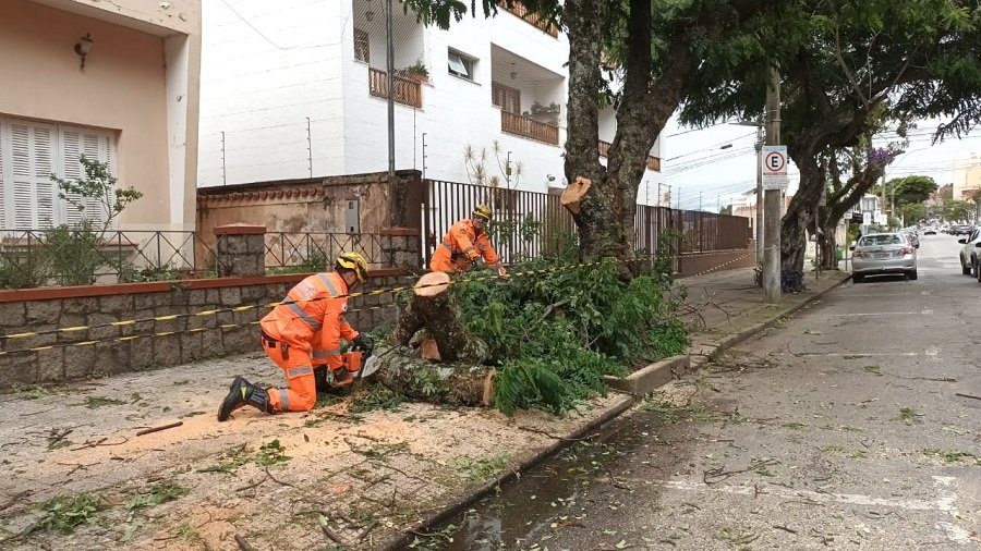 Aparentemente, o restante da árvore parecia sadio, porém será necessário uma vistoria e avaliação completa pelos técnicos da Secretaria de Serviços Públicos.