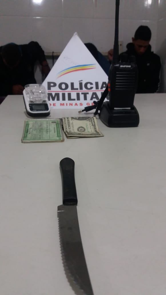 Ainda durante a abordagem um homem de 23 anos tentou se livrar de uma faca que foi jogada debaixo de um banco onde ele e mais envolvido de 19 anos estavam sentados.