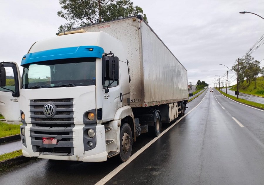 Ao consultarem o sistema informatizado, os policiais constataram que a carreta estava com o licenciamento em atraso.