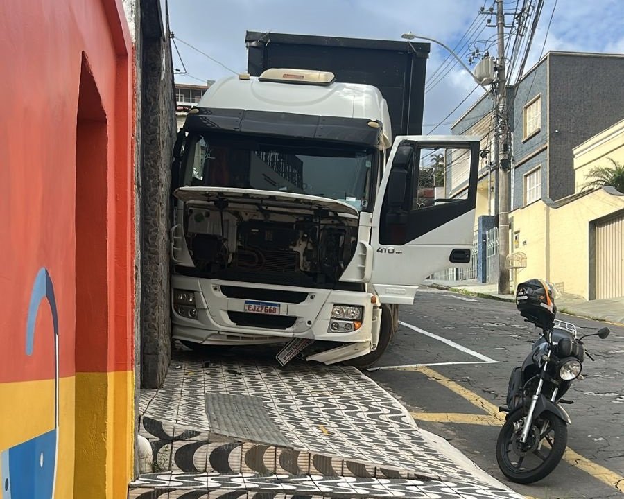 Carreta desgovernada bate em muro do Sesc no centro da cidade