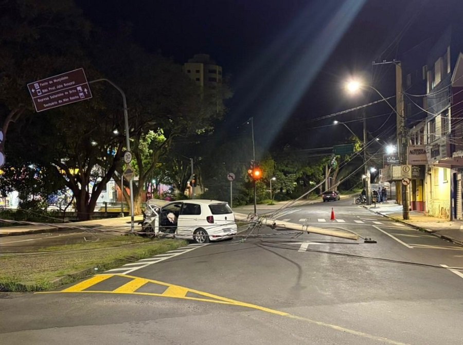 De acordo com a Polícia Miliar, uma equipe foi até a rua VX de Novembro, onde o condutor de um VW Fox havia perdido o controle da direção e batido contra um poste, que se partiu ao meio devido ao impacto.