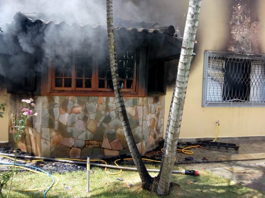 Equipes do Corpo de Bombeiros de Poços de Caldas controlaram no final da manhã desta quinta-feira, 20, um incêndio em uma casa de dois andares na Rua Marcelo Bonadeiro no Jardim Del Rey. O vazamento de um cilindro de gás de 45 kg pode ter sido a causa do incêndio.