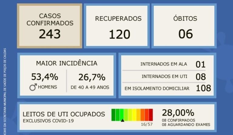 Read MoreSubiu para 243 o número de casos positivos de Coronavírus em Poços de Caldas, de acordo com os dados atualizados