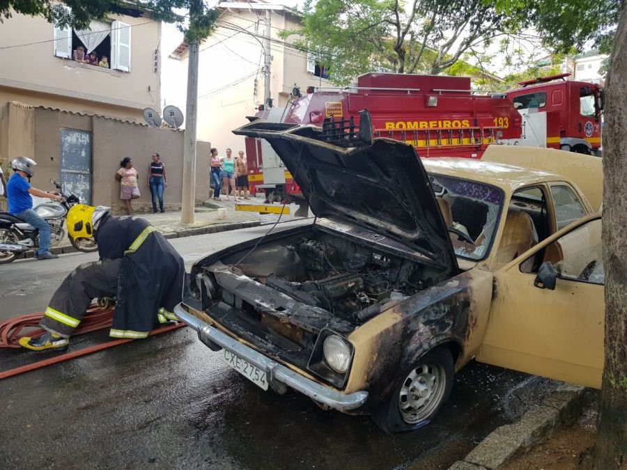 Susto para o dono de um Chevette na tarde desta quinta-feira, 5, na Vila Cruz. O carro que estava na Rua Honório Dias começou a pegar fogo depois de um curto circuito na fiação do som do veículo.