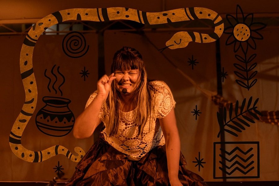 A contação é um convite à escuta e ao imaginário coletivo, valorizando a sabedoria dos povos originários e o poder da narrativa como forma de ensinar, lembrar e transformar.