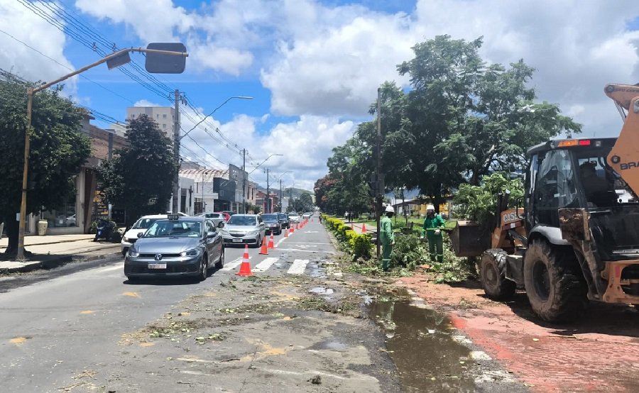 Corte de árvore em ponte provoca lentidão na Avenida João Pinheiro
