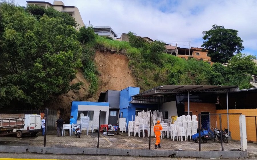 Machado (MG) – A Defesa Civil de Machado monitora um barranco próximo ao terminal rodoviário, depois de um deslizamento no último sábado, 31.