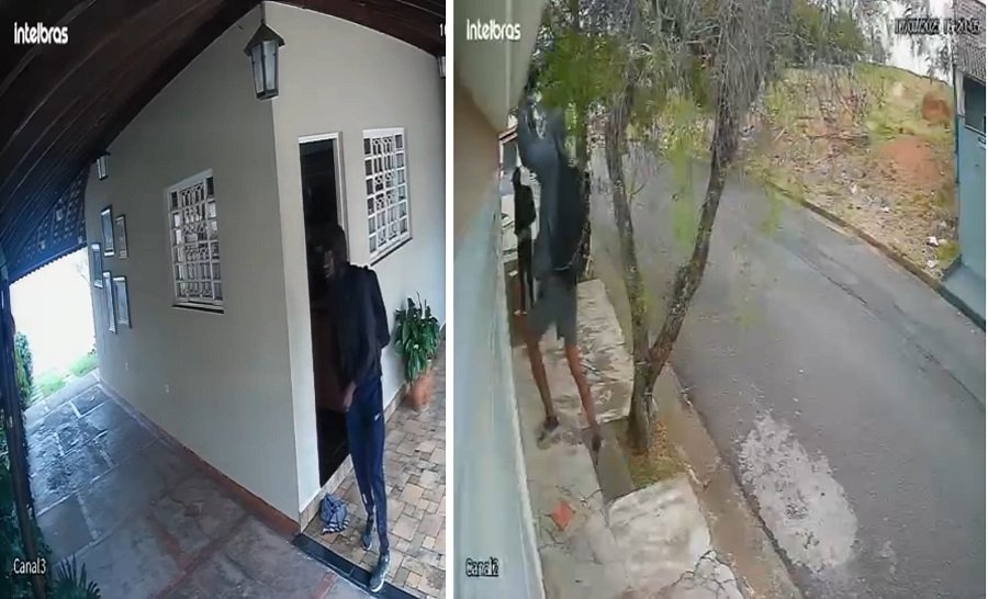 As câmeras de segurança flagraram o momento em que os dois homens deixam a casa pulando o muro e saem andando tranquilamente.