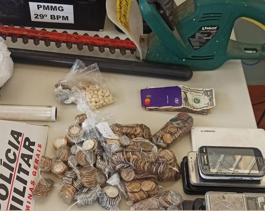 E ainda 10 celulares,  01 carregador portátil de celular, 01 tonfa, 01 podador de cerca viva.