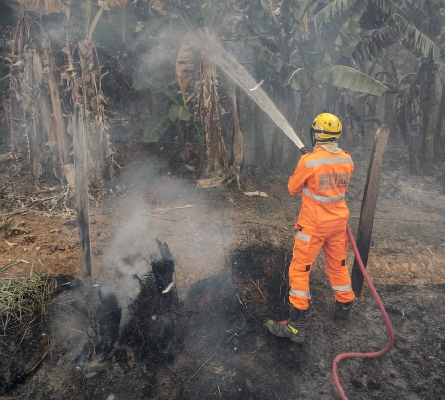 Chegando ao local as equipes se deparam com as chamas consumindo os pés de banana.
