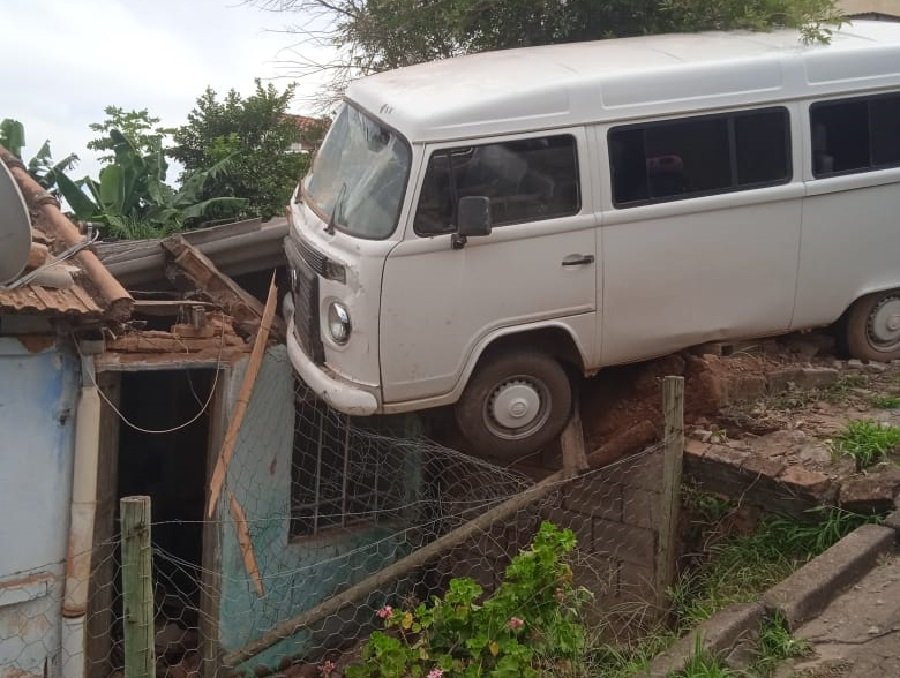 Como estava em uma descida, o condutor disse que puxou o freio de mão e engatou o veículo, porém a Kombi desceu a rua desgovernada a rua.