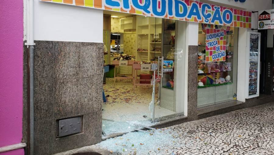 Uma loja de calçados infantis localizada na Rua São Paulo, no centro de Poços de Caldas foi alvo de furto na madrugada desta terça-feira, 26. Funcionários e o comerciante chegavam para trabalhar quando se depararam com uma das portas de vidro quebrada. Os ladrões levaram R$ 100,00 em moedas.
