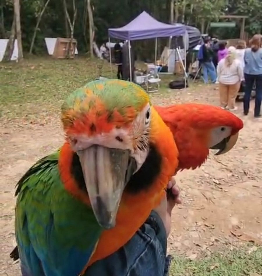 Luz, câmera e ação! Arara Gilberto, de Poços de Caldas participa de gravações de comédia sobre a Floresta Amazônica