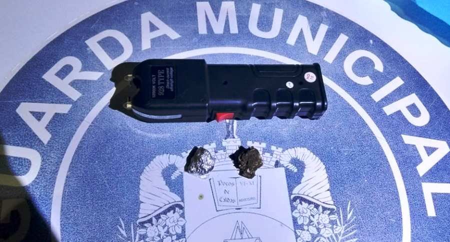 O jovem estava com um grupo de adolescentes que também foram abordados pelos guardas. Na mochila do menor foram encontradas a taser e duas buchas de maconha.