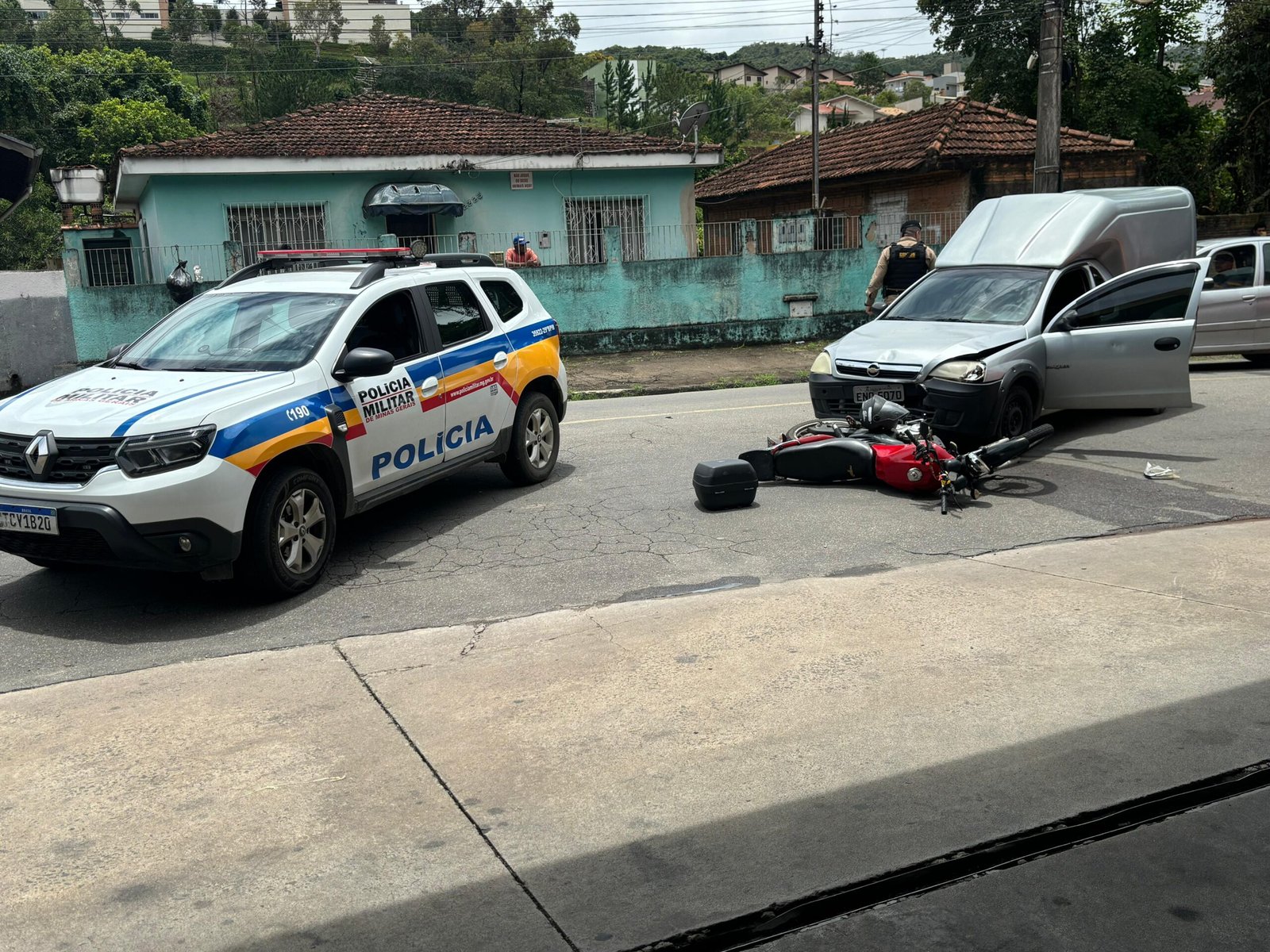 Com o impacto, o motociclista caiu no chão e sofreu escoriações nas duas pernas.