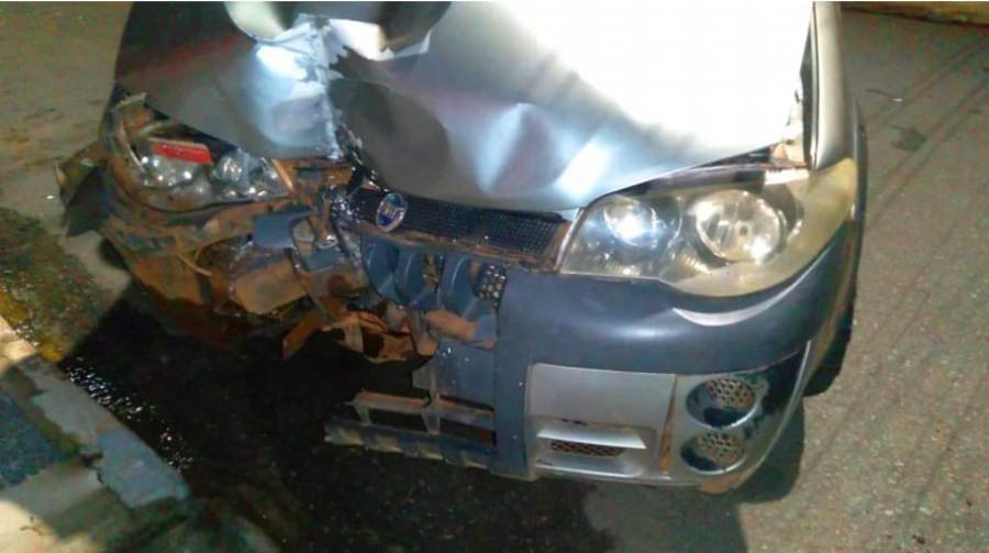 A frente do veículo também ficou danificada e o condutor sofreu ferimentos leves.