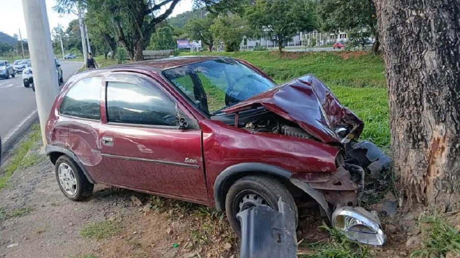 De acordo com a Polícia Militar, a condutora perdeu o controle da direção e bateu de frente com uma árvore entre a avenida e o ribeirão.