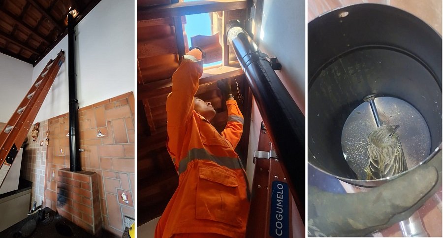Segundo a moradora, o pardal teria entrado pela abertura superior da chaminé e não conseguiu retornar, ficando preso na tubulação e correndo risco de morte. A equipe constatou que a estrutura da chaminé estava chumbada, o que exigiu grande cuidado e precisão durante a intervenção.