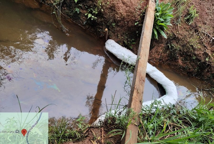 Uma barreira de contenção foi colocada no curso d´água para evitar que o óleo seguisse o curso d´água, ampliando a poluição e danos ambientais.
