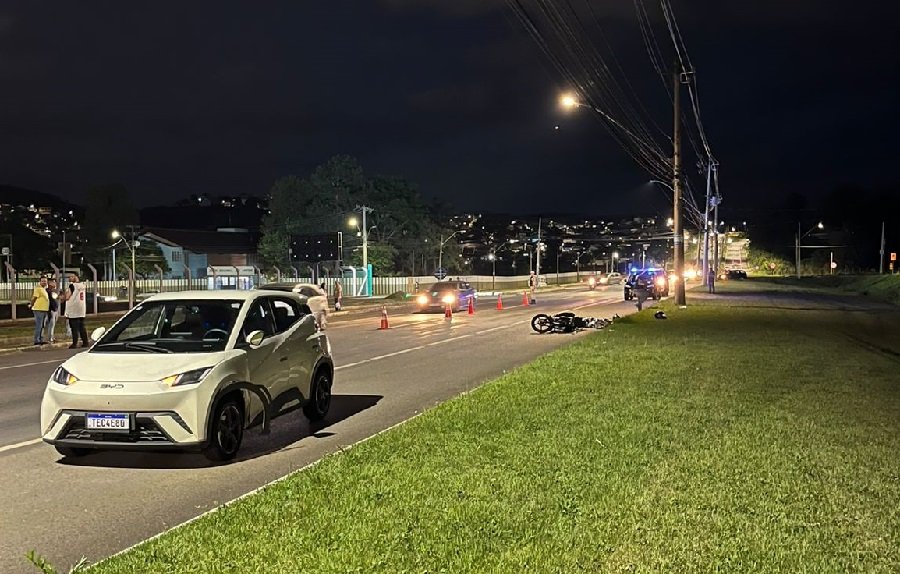 Os policiais apuraram, que o condutor do BYD/DOPHIN transitava pela avenida Dirce Pereira Rosa, e ao acessar a rodovia, não respeitou o sinal de Parada Obrigatória, vindo o condutor da motocicleta que seguia pela rodovia sentido centro/bairro a colidir na lateral do carro.