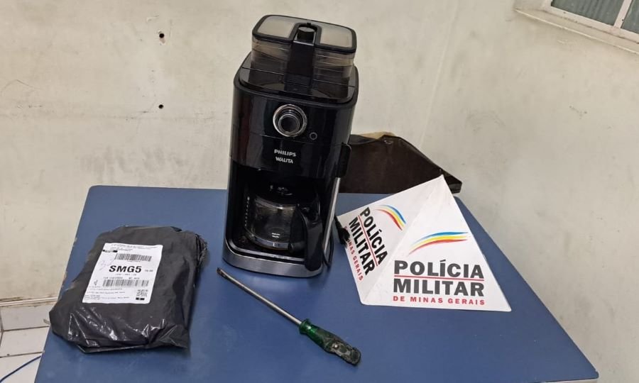 Ao ser abordado, os policiais encontraram na cintura do suspeito uma chave de fenda grande e após fazer uma varredura atrás dos tapumes, os militares encontraram uma cafeteira.