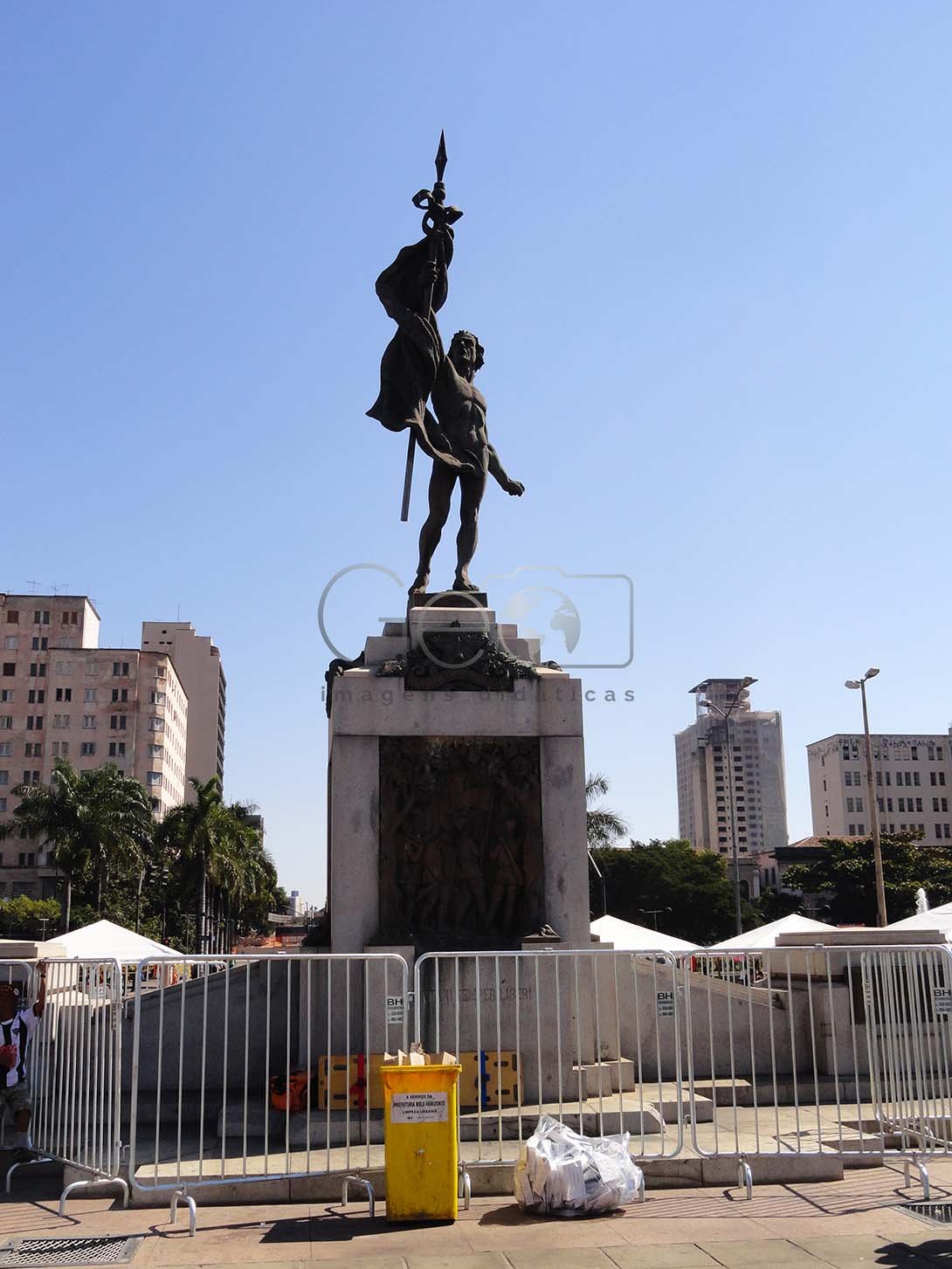 Para Belo horizonte ele usou o mesmo homem com“A Civilização Mineira”, e esculpiu para a praça da estação um índio segurando o estandarte, que seria o marco de pioneirismo desbravador.