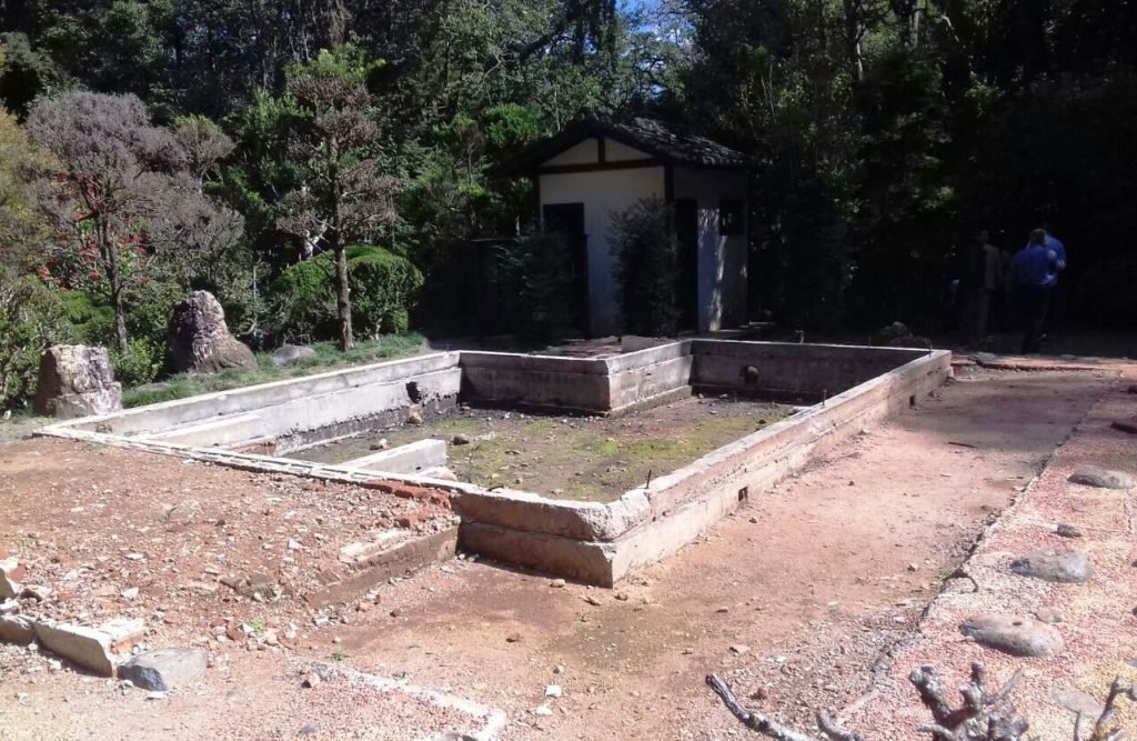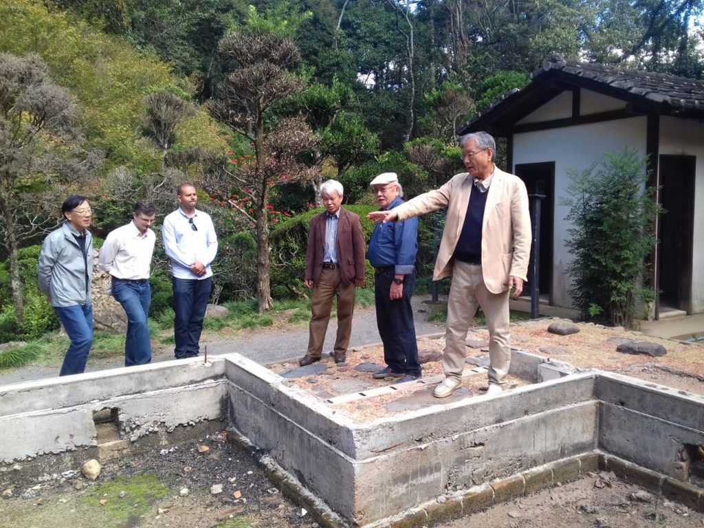 Acompanhado por representantes da Associação Nikkey Poços de Caldas e da Sociedade Brasileira de Cultura Japonesa e de Assistência Social – Bunkyo, Nakashima, percorreu toda área onde existia a Casa do Chá para fazer uma análise para a reconstrução.