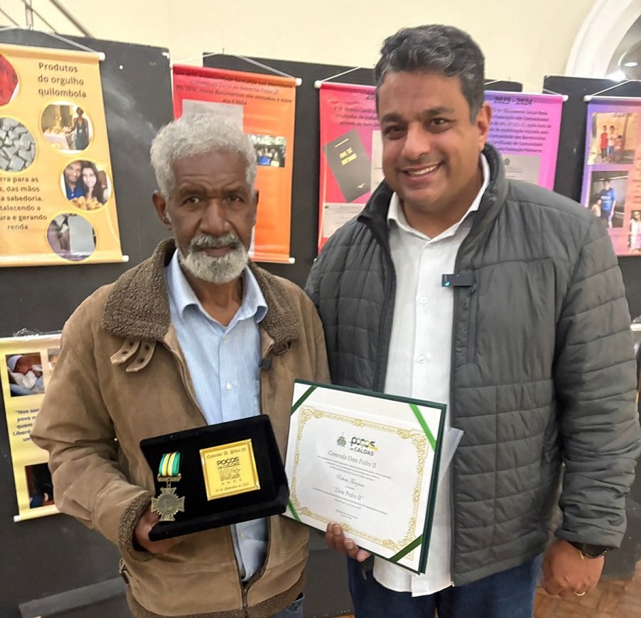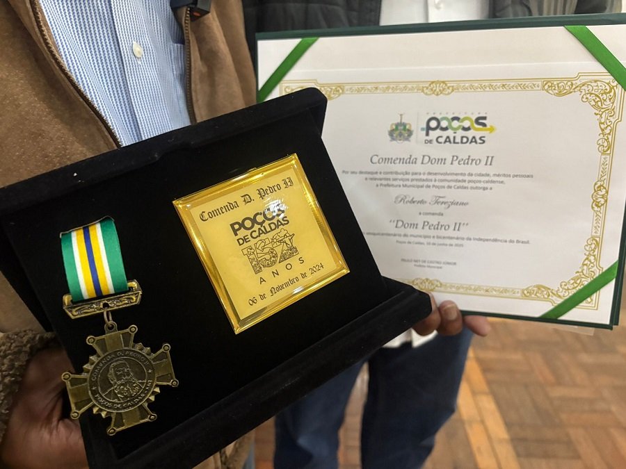 O jornalista e historiador, Roberto Tereziano, recebeu neta terça-feira, 5, a Comenda Dom Pedro II ao jornalista Roberto Tereziano. A condecoração concedida pelo prefeito Paulo Ney marcou a solenidade de abertura do Seminário Escuta Necessária para uma Educação Antirracista Plural, realizado durante todo o dia, no Espaço Cultural da Urca, em Poços de Caldas-MG.