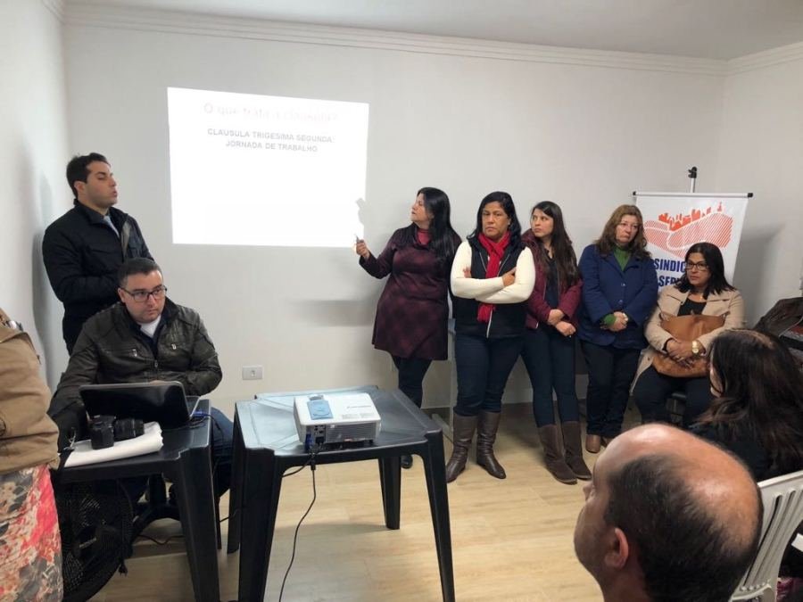 Em pauta estava discussão pela retirada ou manutenção da Cláusula 32 que trata da aplicação do divisor 150 na hora extra para quem trabalha 6 horas por dia.