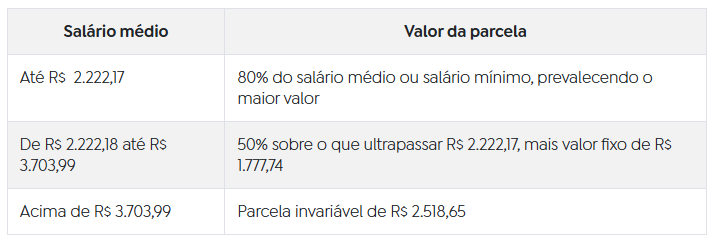 A tabela das faixas salariais usadas para calcular o valor da parcela seguiu o Índice Nacional de Preços ao Consumidor (INPC) de 2024 e foi reajustada em 3,9%.