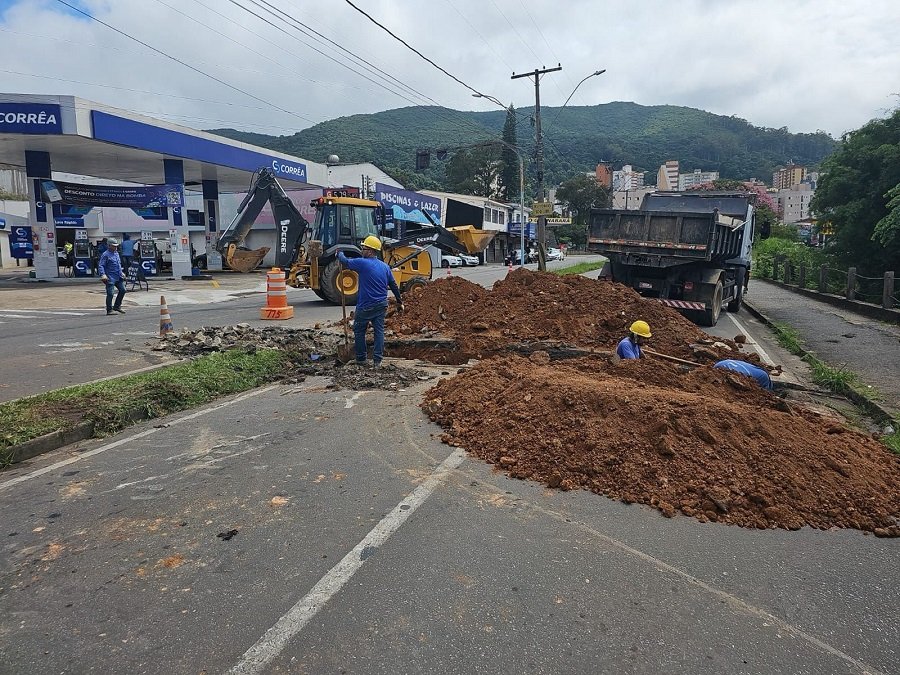O trecho foi interditado para a realização de uma obra de manutenção de rede de esgoto no entroncamento da Avenida José Remígio Prezia com a Rua Ouro Preto, próximo ao mini terminal rodoviário.